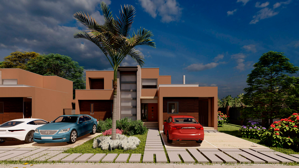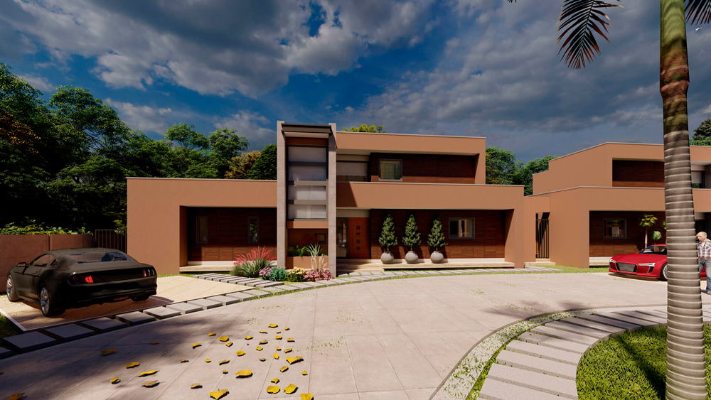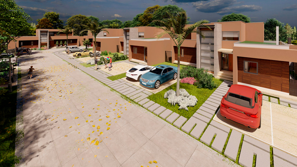 GENEROSOS ESPACIOS DE CIRCULACIÓN CON 4 ESTACIONAMIENTOS POR VIVIENDA