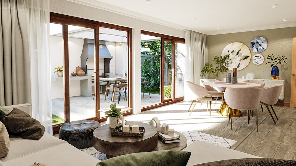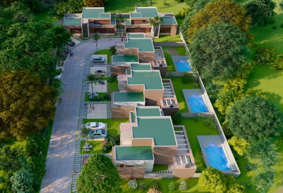 GENEROSOS ESPACIOS DE CIRCULACIÓN CON 4 ESTACIONAMIENTOS POR VIVIENDA